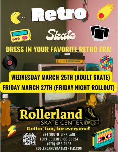 - FRIDAY NIGHT ROLLOUT from 6pm-9pm for Public Skate (All ages)